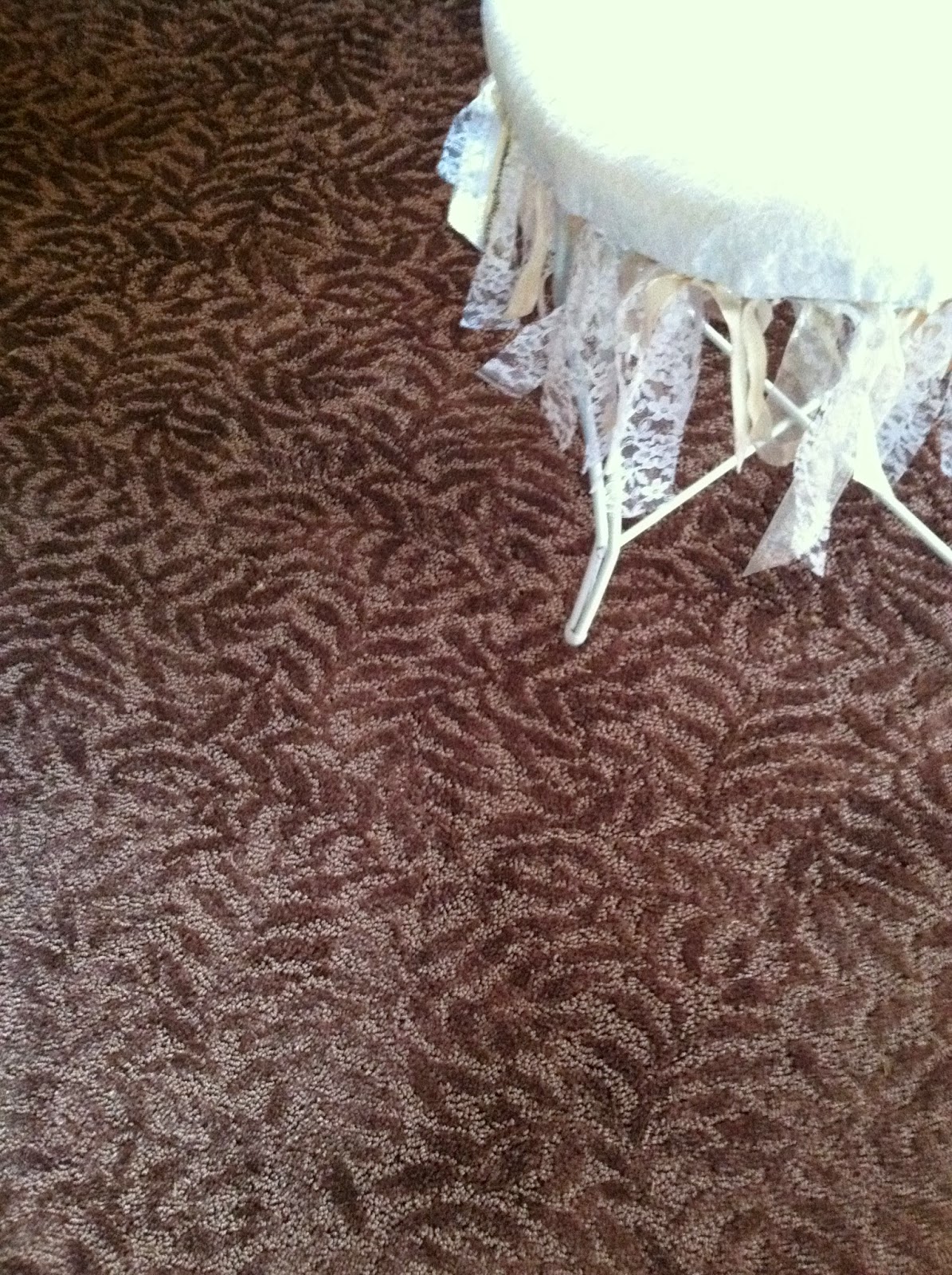 This is right by the back door going outside. The carpet is in fairly good condition. We have some paint touch ups to do....but I love the burlap valances.